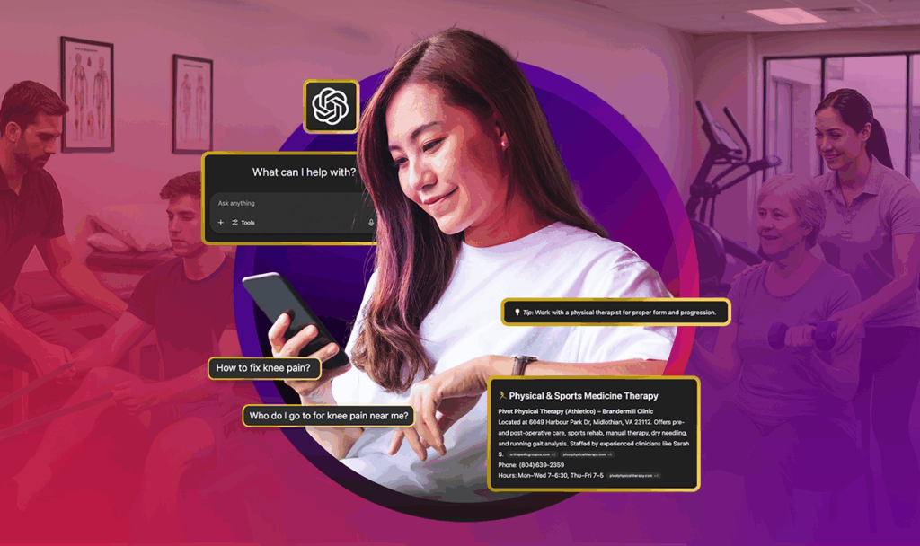 Today, patients are asking ChatGPT, not just Google. They’re saying “Hey Siri, who’s the best PT near me?” and getting an answer. They’re scrolling Instagram Reels, clicking Google Maps, and skimming AI-generated summaries.