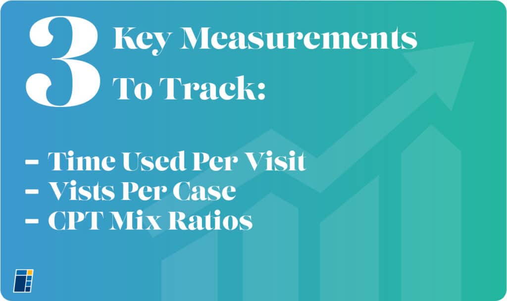 The 3 key things we measure are timed units per visit, visits per case, and CPT mix ratios. We measure a lot of other things, but if we get those right, we’re doing pretty good. Now we’re saying “okay, it’s not just measuring this for commercial insurers, federal insurers”, we look at flat rate insurers as well and are aware of how we treat those patients. You know, if you’re not being paid for a full hour, is it really responsible to have the patient under the care of a PT for a full hour?