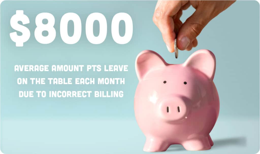 Matt: Our analysis indicates that PT’s leave an average around $8,000 on the table each month. Over the years it has been drilled into them not to over-bill and now PTs will do everything to avoid even the appearance of over-billing. It’s easy not to see a patient for enough visits and that is a huge factor in that $8,000.