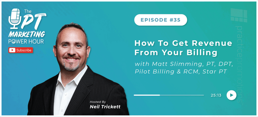 Matt Slimming, PT, DPT of Pilot Billing & RCM, and Star Physical Therapy sat down with our CEO Neil Trickett to discuss billing practices, the biggest mistakes he sees in the industry, and what your clinic finances should be focused on: